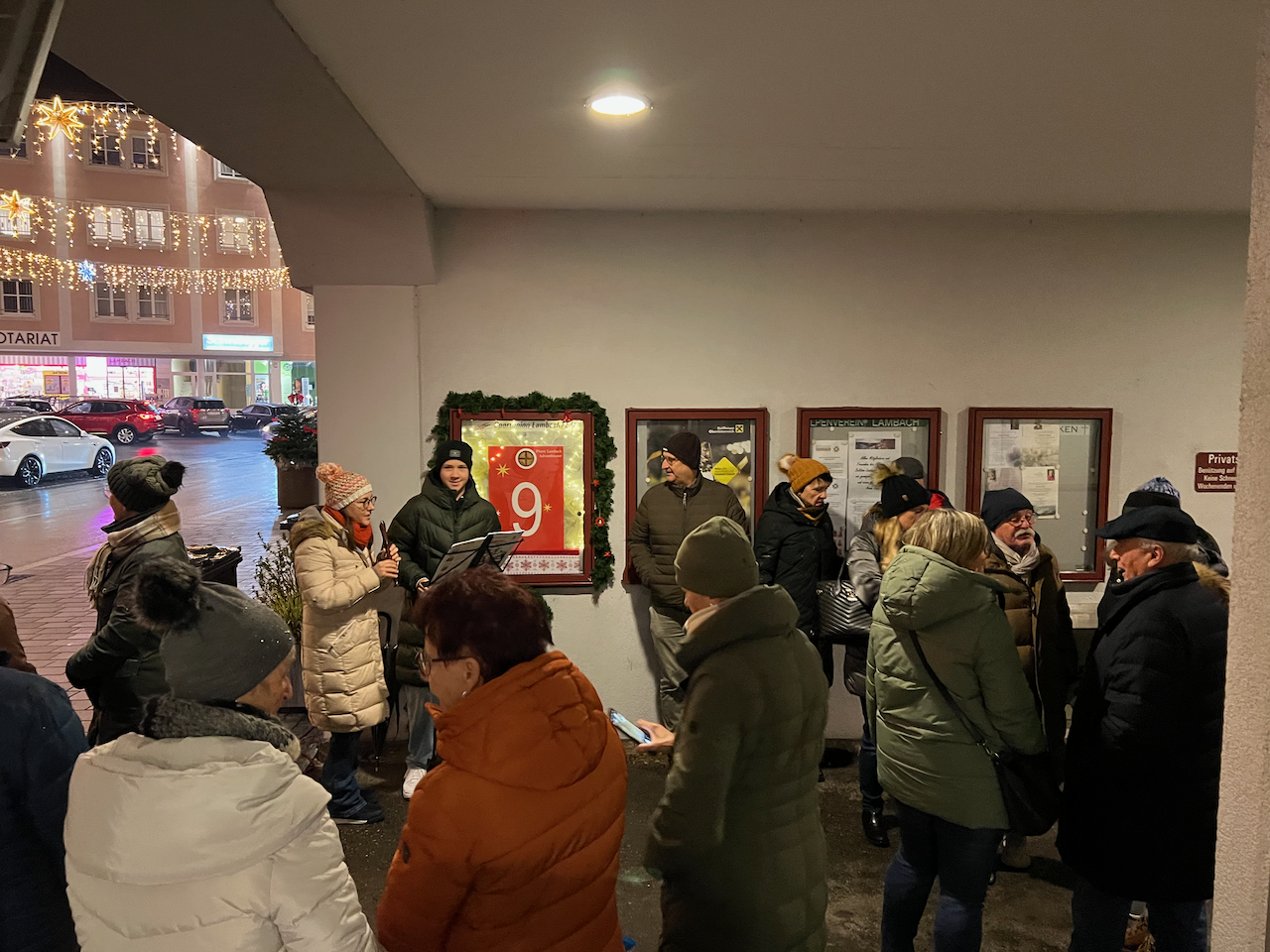 Die Union Lambach/Edt durfte das 9. Adventfenster am Marktplatz Lambach eröffnen. Bei stimmungsvollem Winterwetter wurden die zahlreichen Besucher/innen mit einem Weihnachtslied eines Flötenduos eingestimmt. Die Union-Obfrau, Frau Dr. Michaela Baur, las eine heitere Weihnachtsgeschichte vor. Abgeschlossen wurde dieser „offizielle“ Teil mit einem weiteren Weihnachtslied. Danach gab es bei gemütlichen Gesprächen Glühmost, Tee und Kekse. Dank gilt Margit König-Felleitner, die sowohl das Fenster geschmückt als auch die weihnachtlichen Köstlichkeiten bereitgestellt hat.